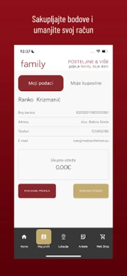 Открийте приложението Family – вашата нова програма за лоялност! Насладете се на ексклузивни възможности и атрактивни предложения, достъпни във всички наши магазини в цяла Хърватия. Бъдете част от нашето семейство и печелете награди при всяка покупка.