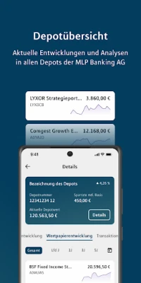 Financial Home App трансформира начина, по който възприемате своето състояние. Проследявайте в детайли всички активи, управлявани от MLP Banking AG, и допълнете картината с други важни за вас средства, постигайки безпрецедентна прозрачност. Наблюдавайте развитието на вашите инвестиции в избрани от вас времеви периоди и вземайте информирани решения въз основа на подробен анализ на доходността на портфейла ви. Функцията "Договори" пък осигурява централизиран достъп до всички ваши важни споразумения, включително тези, обслужвани от MLP Finanzberatung SE, с опция за добавяне на допълнителни, за да поддържате винаги пълен контрол.
