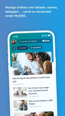 KBC Mobile е обогатено и с множество персонализирани функции и удобства. Придайте уникален облик на вашите сметки с персонализирани снимки, скрийте суми за по-голяма поверителност или подредете началната страница точно по ваш вкус. Ако желаете да разширите финансовите си познания, приложението предлага достъп до кратки, ясни и актуални статии по ключови финансови теми. Вашият цифров асистент, Кейт, също е на разположение – просто докоснете лентата за търсене в горната част на приложението и задайте своя въпрос. Дори от вашия смарт часовник (Wear OS) можете бързо да проверите наличността по сметката си. А с програмата „Създадено за вас", печелите Кейт Коини, които ви носят атрактивни отстъпки, кешбек и други преимущества както от KBC, така и от нашите партньори.