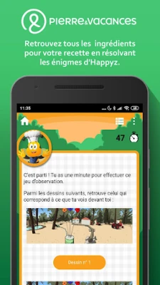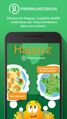 Готови ли сте да приемете предизвикателството? Играта Happyz е напълно безплатна, може да се играе офлайн и е проектирана така, че да може да бъде завършена на няколко етапа, съобразявайки се с вашия ритъм на почивка. Отдайте се на това уникално преживяване, достъпно в широк кръг обекти на Pierre & Vacances – от морски и планински курорти до провинциални резиденции, включително и Premium обекти. Разработена от Pierre & Vacances и Furet Company, това приключение ви очаква с между 1 час и 1 час и 30 минути чисто забавление и откривателство.