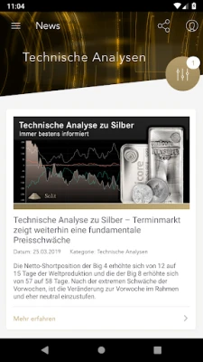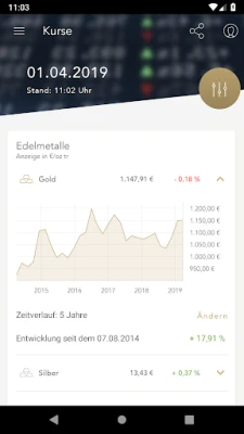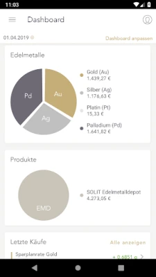 С SOLIT App ще имате постоянен достъп до актуални цени на злато, сребро, платина и паладий – в евро, щатски долари, британски лири или швейцарски франкове, по Ваш избор. Наблюдавайте развитието им с минутна точност чрез интерактивни графики и анализирайте съотношенията между металите. Приложението предлага и богат набор от допълнителни котировки, включително водещи индекси като Dow Jones и DAX, криптовалути като Bitcoin и Ethereum, както и цени на суровини като мед и петрол. Бъдете винаги информирани с ежедневни новини за пазарите, ексклузивни анализи и седмични технически обзори от експертите на SOLIT.