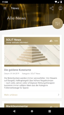 Запознайте се със SOLIT App – Вашият незаменим спътник в света на благородните метали и финансовите пазари. Като приложение от SOLIT Gruppe, многократно отличавана от Focus Money като "най-добрият доставчик на планове за спестяване на злато" (включително за годините 2016 до 2024), ние Ви предоставяме не просто информация, а цялостна платформа за управление. Основана през 2008 г., SOLIT Gruppe ежегодно реализира стотици милиони евро в обем на благородни метали, утвърждавайки се като лидер, на когото можете да се доверите за Вашите инвестиции.